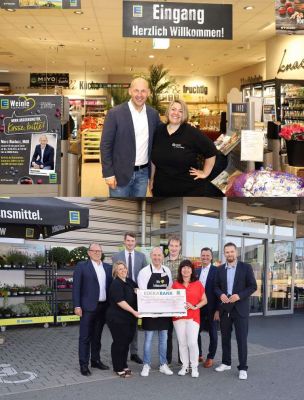 An der Kasse kassierte MdB Marc Biadacz 1500 Euro für die Helfer vor Ort des DRK Gärtringen.